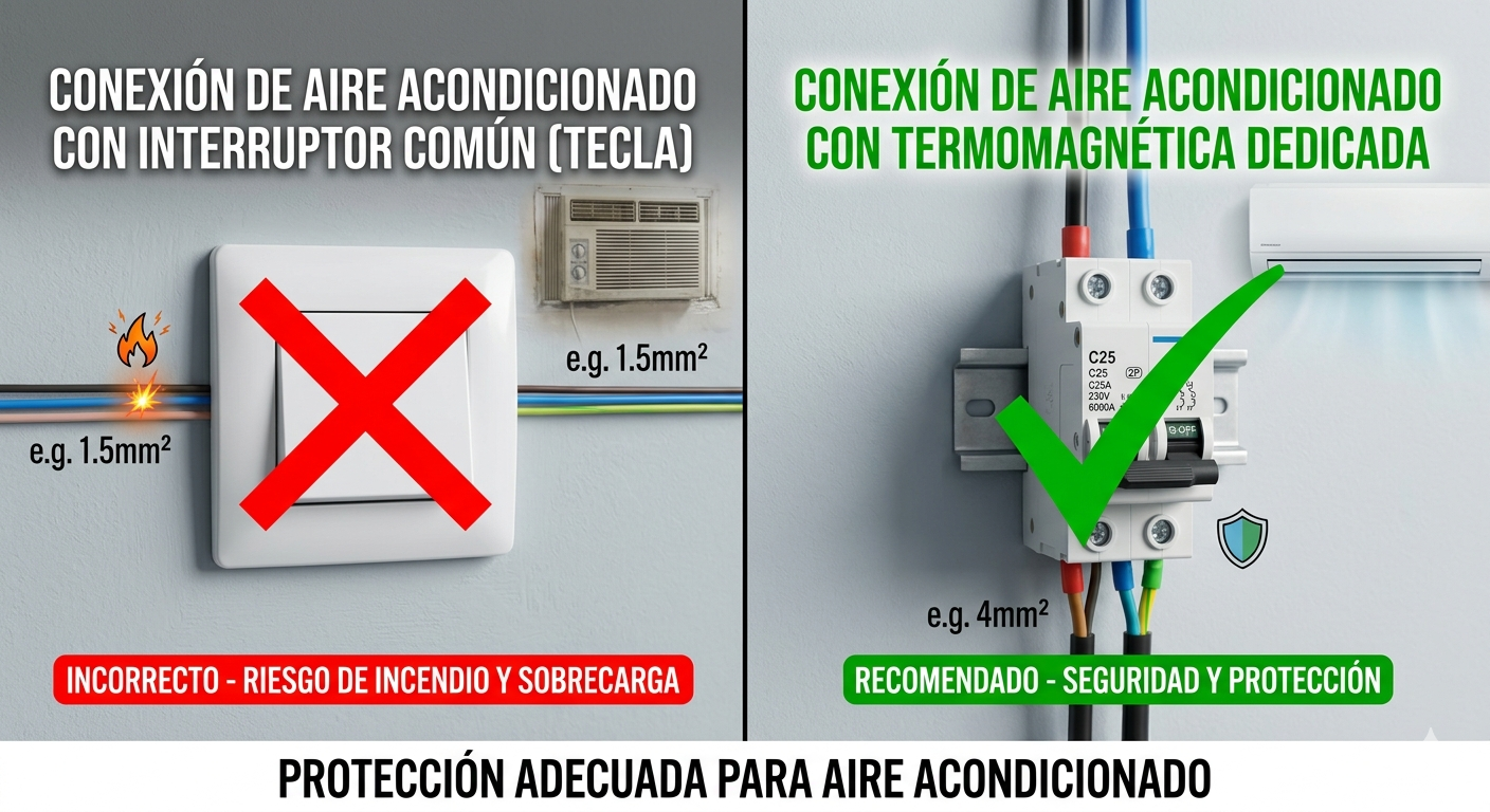 esta debe de ser adecuada al circuito que se desea proteger y alimentar. Nosotros colocamos una por cada aire para poder tener mayor seguridad con ese equipo y una solución para posibles problemas en un futuro relacionado con consumos extremos (principalmente por motor clavado o por capacitores descargados).